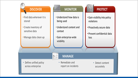 This solution can enforce better business practices concerning handling and transmission of sensitive data. This solution will discover, monitor, protect, and control network access and enforce content policies wherever it is stored or however it is used. This content-aware solution is able to classify information content that: